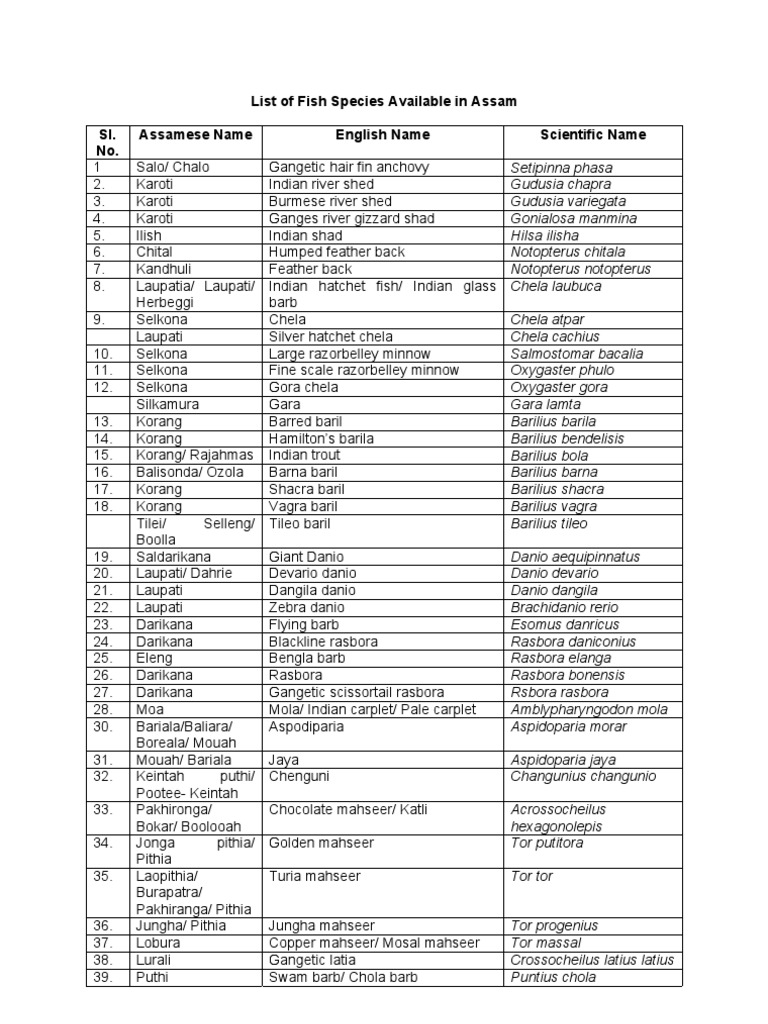 Fish Species Of Assam Fishkeeping Fish And Humans